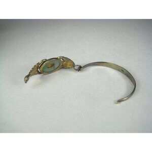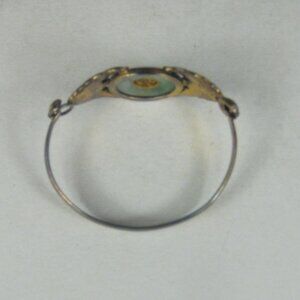 This vintage bracelet showcases exquisite Chinese craftsmanship, featuring a cloisonné design with intricate enamel work and a central jade stone. The bangle style offers timeless elegance, making it a refined addition to any jewelry collection.