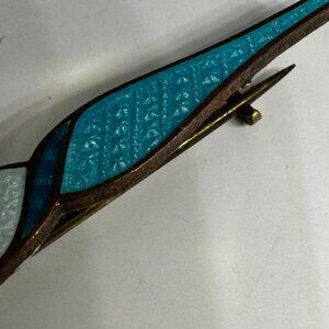 Antique Enamel Guilloche Brooch Pin Flower Blue Gold Plated C clasp