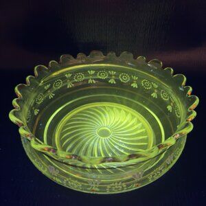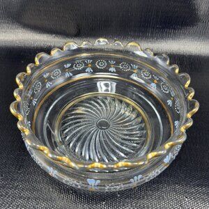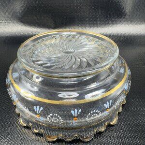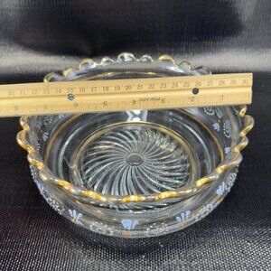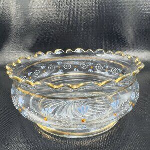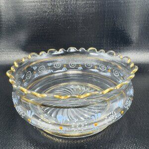 Antique Enameled Paint Large Glass Bowl Dish Gold Painted Edge Manganese 365nm