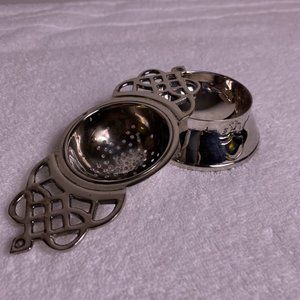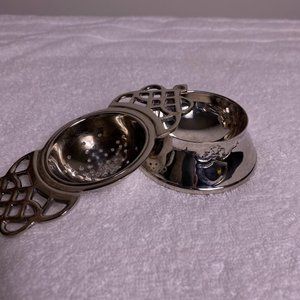 Antique English Silver Tea Strainer with Rest (2 piece)