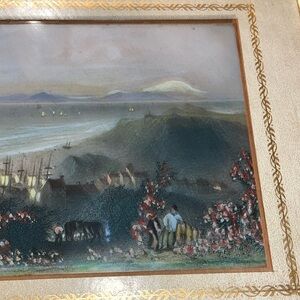 Antique Engrave Landscape Art Matted Framed Sungott Art #271