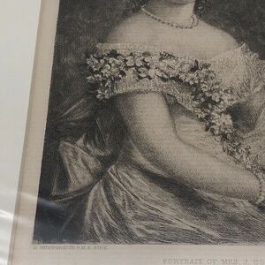 Antique Original Etching D Huntington "Portrait Of Mrs J Coleman Drayton"