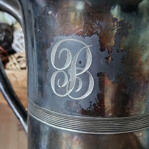 Antique Eureka Quadruple Silver-Plated Engraved Pitcher – "B" Monogram