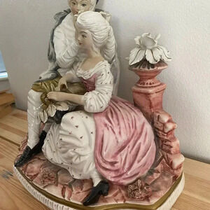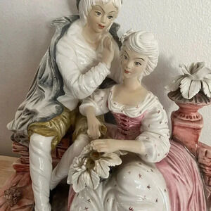 Antique European Porcelain Man And Woman Garden Large Figurine Lovers Courtship. This item is pre-owned. Antique. Great condition. No flaws. Measurements: 12.5 inches tall 13.5 inches wide 7.5 inches deep