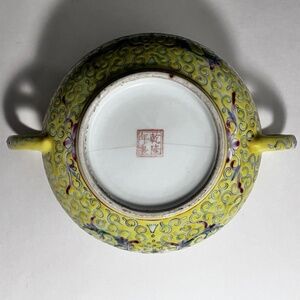 Antique FAMILLE JAUNE SUGAR BOWL Circa 1900 / Rare Chinese Treasure / Some Flaws