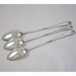 This elegant set of three antique, c. 1910-20, iced tea spoons features the timeless Fairfield Silverplate design. Perfect for collectors or those who appreciate vintage charm, these spoons add sophistication to any table setting. Symbols stamped on the back are what is known as a pseudo-hallmark (sometimes stamped on late 19th and early 20th century silverplate to make the buyer think they were buying sterling silver).
