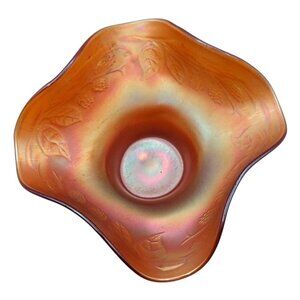 Antique Fenton Blackberry Spray Marigold Carnival Glass Ruffled Footed Bowl 1216