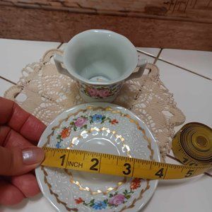 Antique Floral Demitasse Double Handle Tea\Coffee Cup Saucer Limoges France