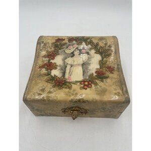 Antique Floral Shaving Mug & Brush Set In Victorian Celluloid Box Gold Accents