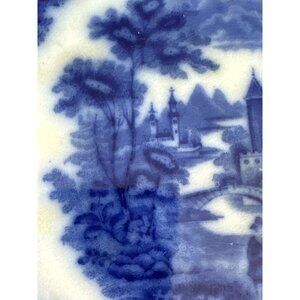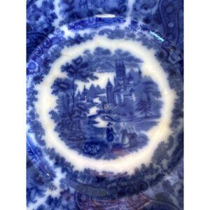Antique plate, flow blue, Burgess & Leigh, scenic design, decorative plate, collectible pottery, Middleport pottery, vintage ceramic, transferware decor, England plate, blue and white dish, home decor, vintage tableware