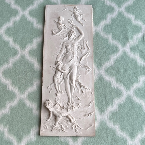 Antique Francois Duquesnoy Paris 1892 neoclassical Nymph and Putti marble plaque
