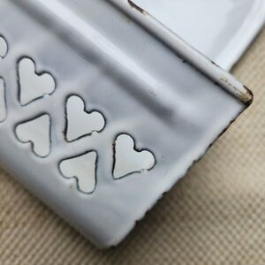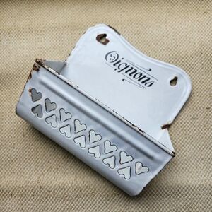 Antique French Enamelware Onion Oignons Bin Wall Container Black White Vintage with Heart Cut Outs