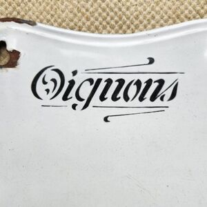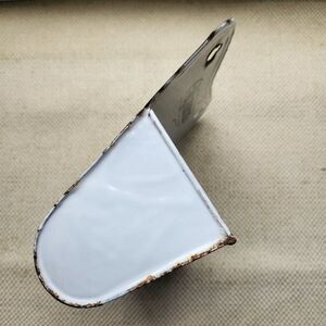Antique French Enamelware Onion Oignons Bin Wall Container Black White Vintage