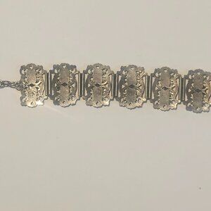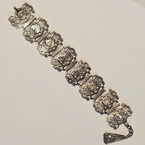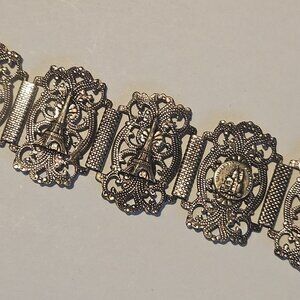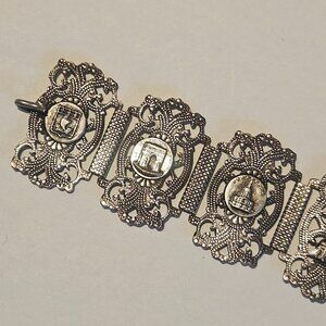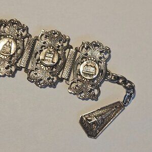 Antique French Paris Sterling Silver Eiffel Tower Tourist Panel Bracelet 7"-8"