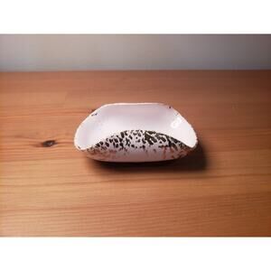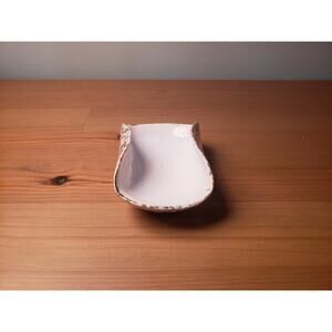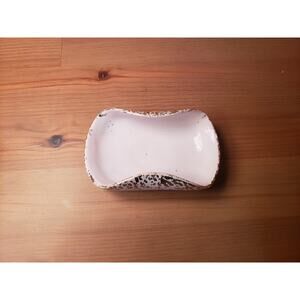 Antique hand painted in France pink and gold flecked jewelry or trinket dish. Piece is in excellent condition for its age with no chips or cracks. The piece measures 3.5" long and a little over 2" wide. Check out our other listings for more vintage finds!