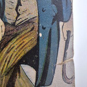 Small tears, corner creases, and mild discoloration visible. Approximately 5.5 x 3.5 inches.