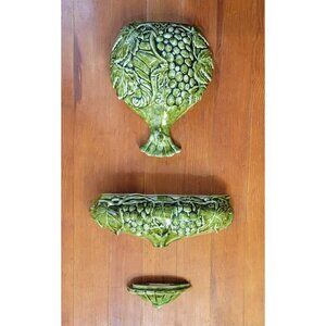 This beautiful Antique 1960s Arnels Ceramic Faux Wall Fountain is truly a rare find. I have gone back and forth about keeping it for myself, it's so beautiful, but I finally decided to share it with the lucky buyer who finds this treasure. The grape vine motif is so beautifully detailed, a signature of Arnels ceramics. There are 3 pieces to this set of varying lengths, widths, and heights, giving a very pleasing symmetry to the eye (fake ivy not included). Please see the provided photos for further details.