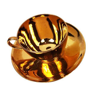 Antique Geo. H. Bowman & Son Gold Tea Cup Saucer 1920-40's Eggshell USA