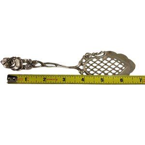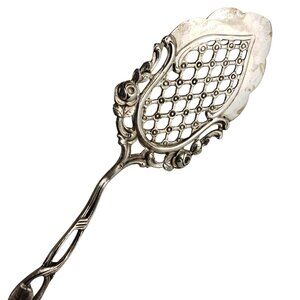 Antique German 800 European Silver Rose Pattern Pastry Tong & Server Set
