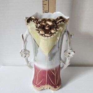 Antique German Art Nouveau Vase Set Hand Painted Floral Gold Trim 1890s - 1930s
