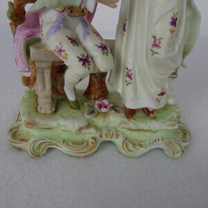 Antique German Kalk Mark Eisenberg Porcelain Figure Courting Lady & Man on Bench