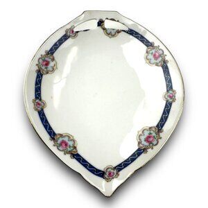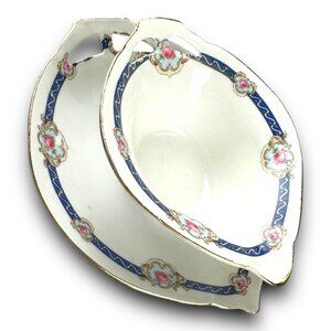 Antique German Porcelain Gravy Boat & Underplate Hand-Painted Floral Design Gold