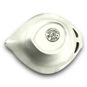 Crafted in the heart of Germany, this exquisite porcelain gravy boat with an underplate features hand-painted floral designs. Perfect for adding a touch of timeless elegance to your dining table, this delicate piece showcases intricate detailing and impeccable craftsmanship. A true collector's item for those who appreciate the beauty of vintage porcelain.