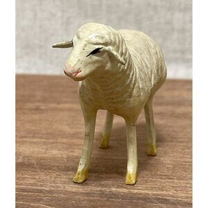 Antique German Putz Nativity Lamb Composition Crèche Figure 3 In Grazing Small