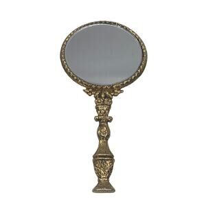 Antique Gilt Scrolled Roses Flapper Small Handheld Mirror Old Hollywood Art Deco Vanity Decor