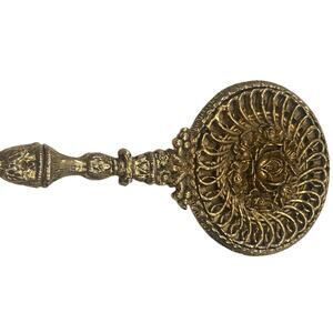 Antique Gilt Scrolled Roses Flapper Small Handheld Mirror Old Hollywood Art Deco
