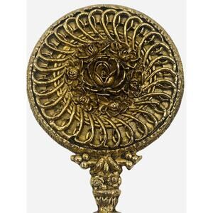 Antique Gilt Scrolled Roses Flapper Small Handheld Mirror Old Hollywood Art Deco