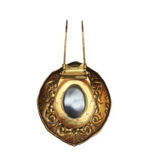 Antique Glass Cameo & Raised Relief Brass Fur Clip (A3583)