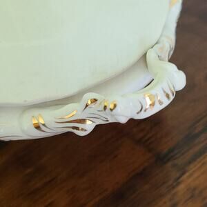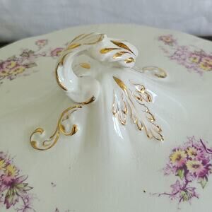 Antique Globe Pottery Covered Vegetable Dish Floral Embossed Gold Cottagecore