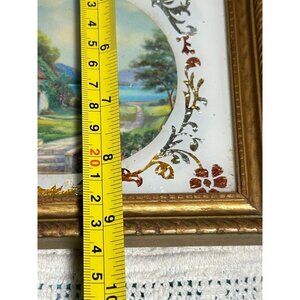 This exquisite vintage religious artwork features a serene depiction of Jesus alongside a quaint countryside landscape. Framed in an elegant gold border, it offers a timeless message of blessing and tranquility. Ideal for adding a touch of spiritual warmth to any room.