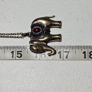 Antique Gold Elephant Pendant Necklace Red Blue Gemstone Accents Fashion Jewelry