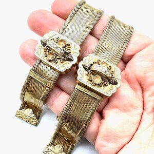 Antique Gold Filled Rare Pair of Wedding Bracelets Seed Pearl Ornate Victorian