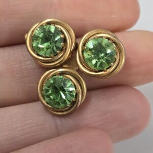 Antique Gold Filled Twist Love Knot Three Greeb Rhinestones C Clasp Brooch Pin