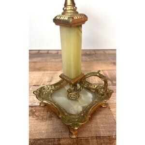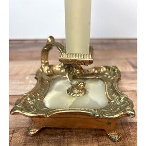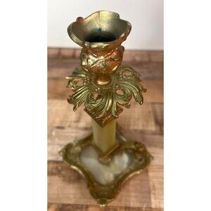 Antique Gold Gilt Ormolu & Onyx Candle Holder With Handle