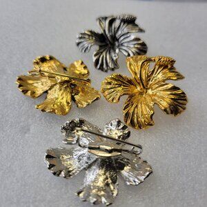 Antique Gold Hibiscus Brooch Medium Size Pin