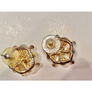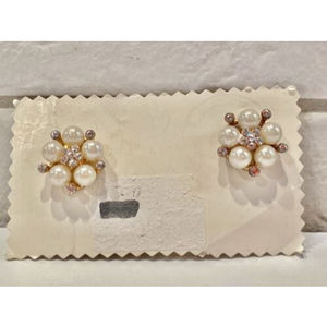 Antique Gold Tone Clear Rhinestones Pearl Deco Stud Post Earrings‎ Snow Star
