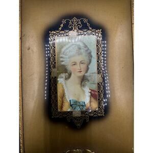 This exquisite antique gold-tone Marie Antoinette hand mirror captures the elegance and opulence of 18th-century French design. Featuring an ornate handle and intricate detailing, it showcases a regal portrait of Marie Antoinette on the reverse side. The mirror is framed with delicate scrollwork and a rich, warm gold finish that enhances its vintage charm. Perfect for display, gifting, or adding a touch of historical romance to your vanity collection. Great value!!