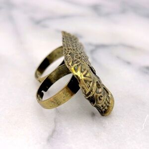 Antique Gold Tone SKULL Duo Finger/Knuckle Ring