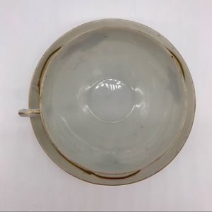 Gold Moriage flowers are hand painted onto this antique, very thin, fine bone china teacup and saucer from Japan. This was produced around 1921, when the US required Japan to use their “American” name rather than Nippon.The raised lines and beads are created by building layers of paint. The bone china is so thin, and you can see the gold painted design on the inside of the cup and saucer. There is some wear, including gold wearing off the rim, as well as some imperfections as pictured.