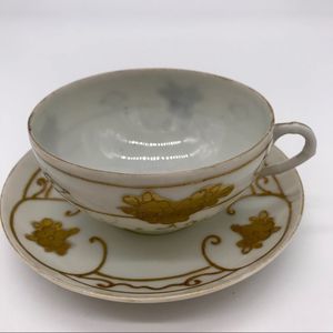 Antique Gold Moriage Japanese Bone China Teacup And Saucer