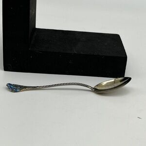 Antique, fully marked, Gorham, silver, baby spoon. Blue enameled flowers, and a very detailed handle. Very, good condition. Sterling 808.. 1899 silver. Petite, and sweet.