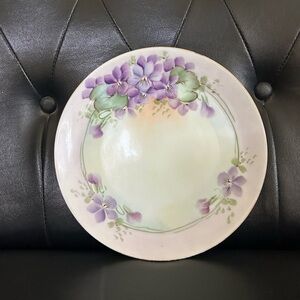 Antique Gotham Austria Handpainted Gold Edges Purple Floral Bread Plate