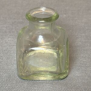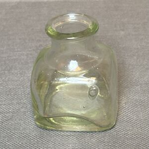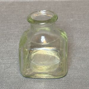 Antique Green Glass Inkwell Ink Bottle Square Handblown Unbranded (UV)