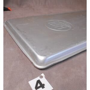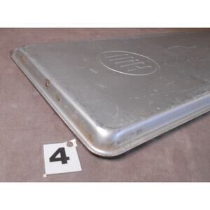 Antique HILL Aluminum Deli Case Display Tray # 4 30" X 10.5" Butcher Bakery. Large aluminum metal display tray from a HILL Co display case. Tray measures approximately 30 inches long by 10.5 inches wide and .75 inch deep. Has two embossed HILL logos. Tray has wear from use including scratches and marks. Please see pictures. I have several of these for sale if you are interested in more than one see my other listings.