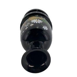 Antique Hand Blown Black Amethyst Glass Vase Hand Painted Floral Rough Pontil