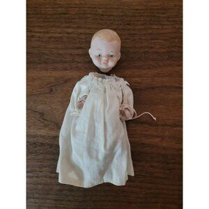 Antique Hand Dressed 6" Bisque Porcelain Baby Doll Cloth Dress - Occupied Japan